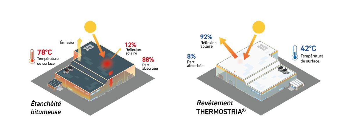 Le cool roof c’est une technologie innovante qui permet de limiter l’absorption de chaleur par les toitures grâce à un revêtement spécifique. En réfléchissant une grande partie du rayonnement solaire, le revêtement réduit la température des bâtiments et améliore l’efficacité énergétique.